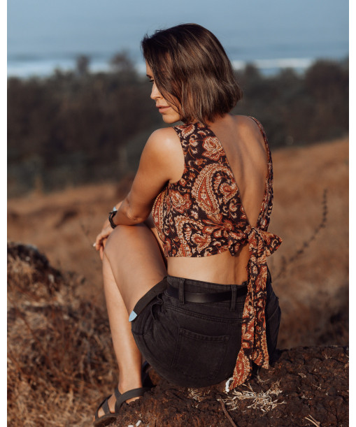 Vous pouvez ajuster le haut Neha en le nouant au dos, assurant un ajustement parfait à votre silhouette.