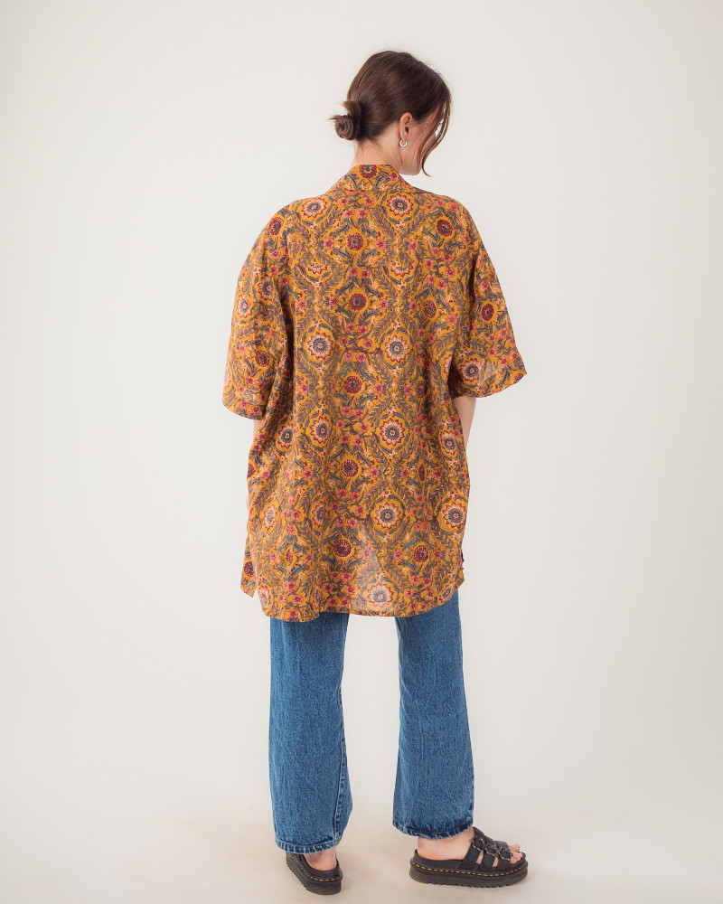 La chemise ample Amara est un incontournable de votre garde-robe. Sa coupe intemporelle rappelle les vestes kimono court, offrant à la fois un look décontracté et élégant. Son motif fleuri sombre est facile à porter et convient à toutes les morphologies. Fabriquée à partir d'un tissus légers en pur coton et de couleur végétale, cette chemise est non seulement confortable, mais aussi respectueuse de l'environnement. Associez-la à un jean pour un look casual, ou à un pantalon élégant pour une occasion spéciale. Polyvalente et chic, la chemise ample Amara est un véritable must-have pour toute personne soucieuse de son style.