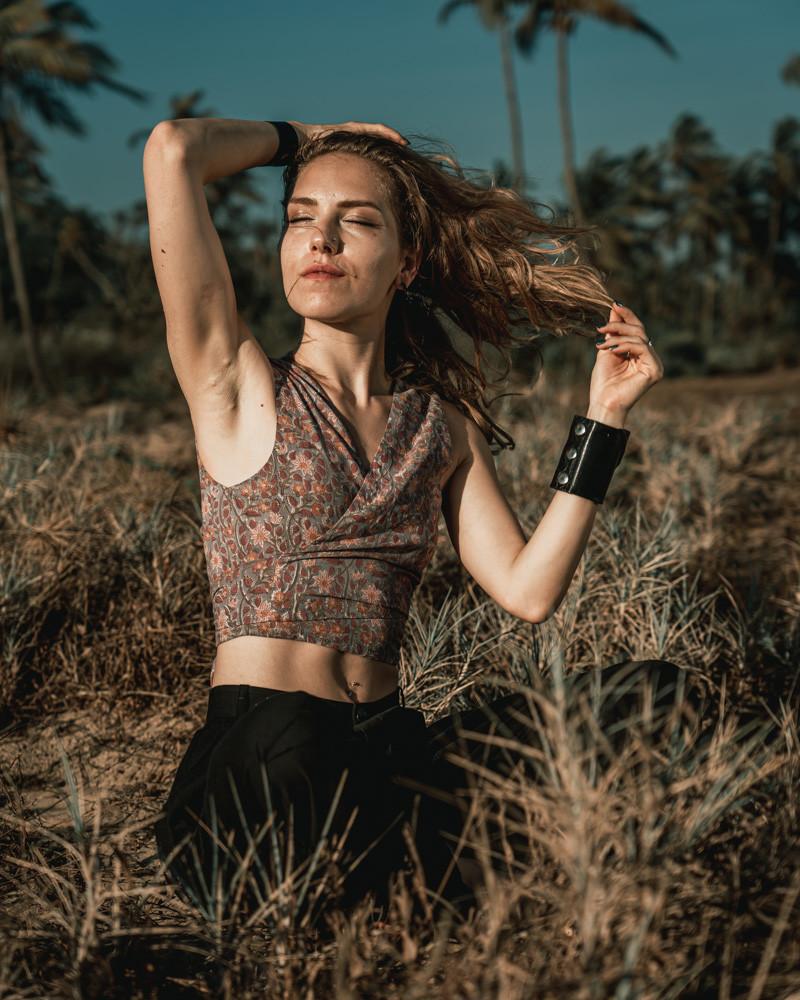 Vous pouvez ajuster le haut Neha en le nouant au dos, assurant un ajustement parfait à votre silhouette.
