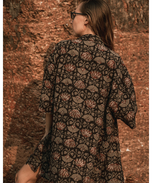 Amara Chemise Oversize - Veste Kimono Floral Sombre