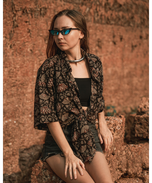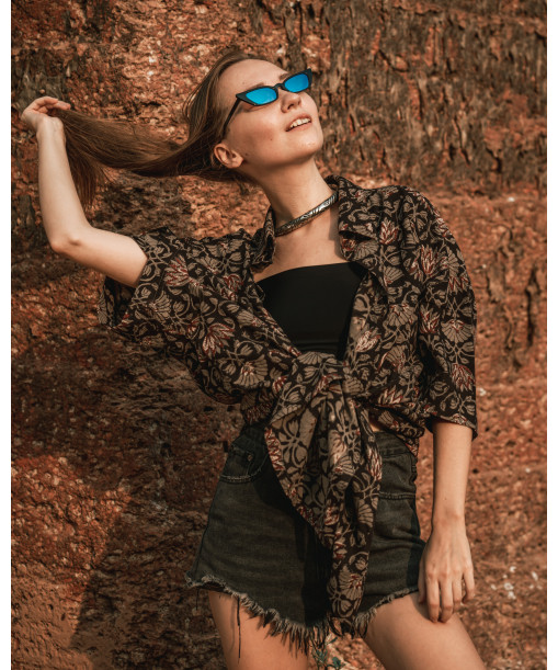 La chemise ample Amara est un incontournable de votre garde-robe. Sa coupe intemporelle rappelle les vestes kimono court, offrant à la fois un look décontracté et élégant. Son motif fleuri sombre est facile à porter et convient à toutes les morphologies. Fabriquée à partir d'un tissus légers en pur coton et de couleur végétale, cette chemise est non seulement confortable, mais aussi respectueuse de l'environnement. Associez-la à un jean pour un look casual, ou à un pantalon élégant pour une occasion spéciale. Polyvalente et chic, la chemise ample Amara est un véritable must-have pour toute personne soucieuse de son style.