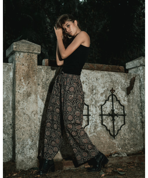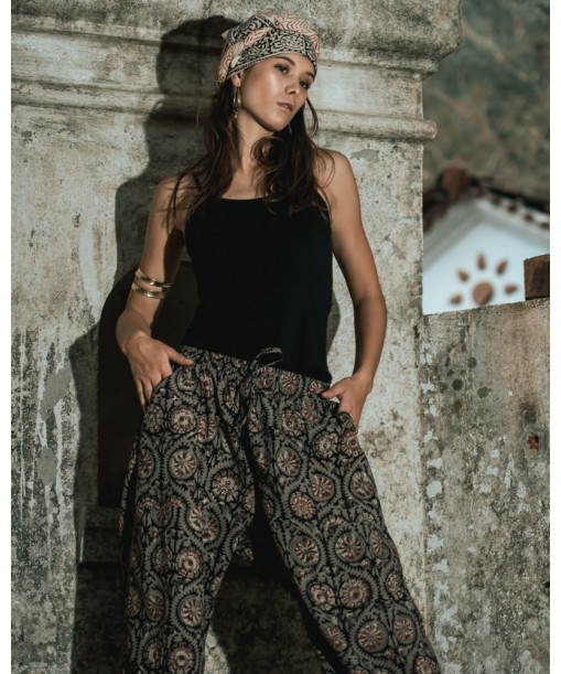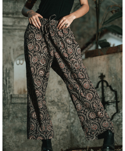 Le pantalon Roja - Notre pantalon Cargot en coton imprimé à la main avec la technique du bloc imprimé. Ce pantalon est conçu pour s'adapter à toutes les tailles, de la taille S à L, assurant un ajustement confortable et détendu pour les hommes et les femmes.