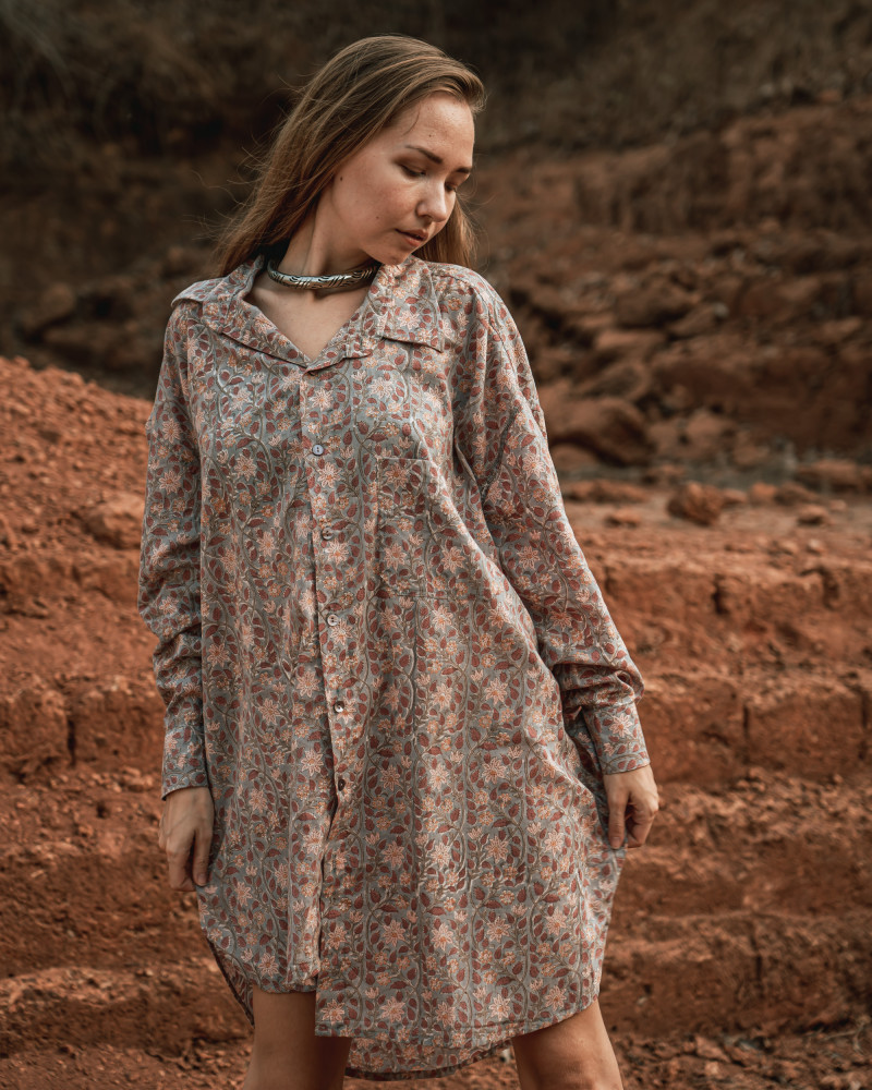 Uma Shirt Dress also employs the use of natural, low-impact production methods. Technique of natural muddy dye to give each dress its distinctive color and texture.